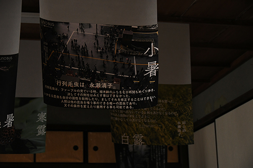 宇野バスの車内で、2021年の夏至から1年をかけて掲載された24節気のポスターが清子の生家で展示れます。